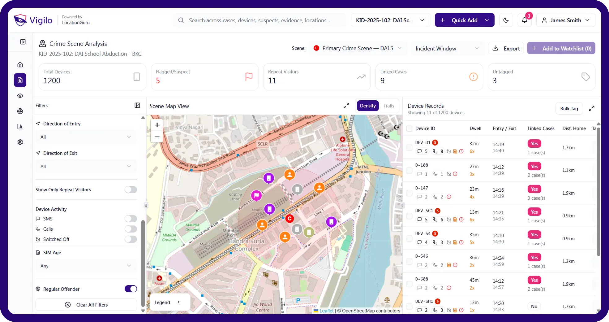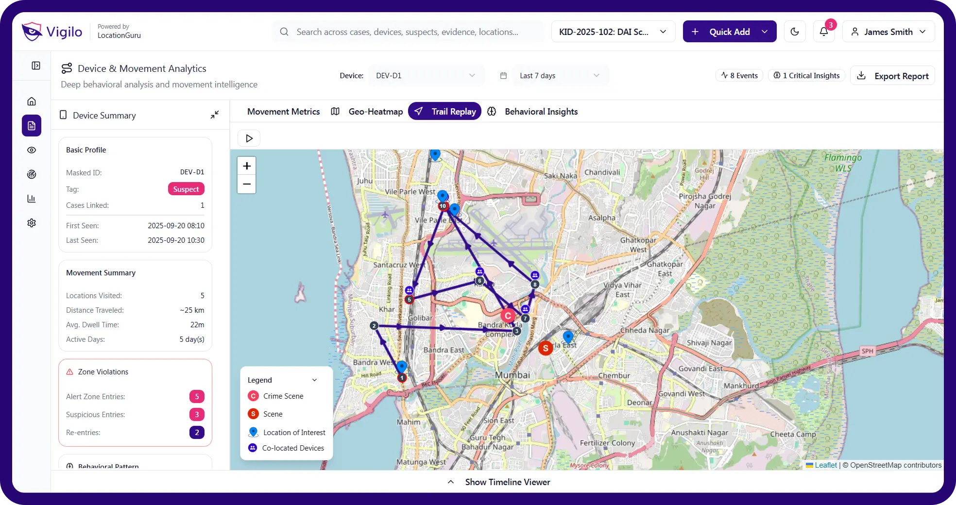 Built for investigators, Vigilo Forensic transforms telecom traces, mobility patterns, and device history into evidence-ready investigative intelligence.