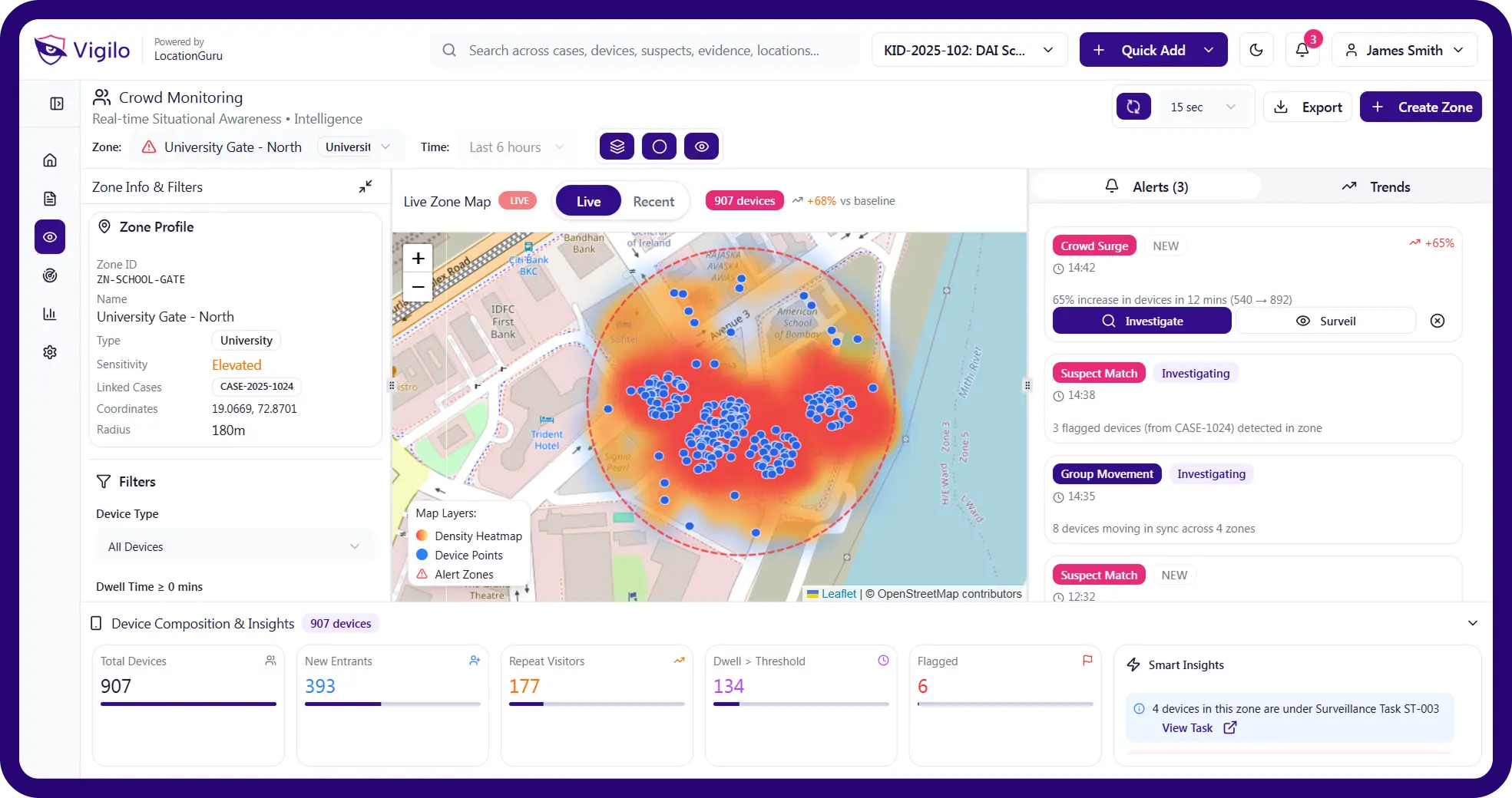 Vigilo is an AI-powered Location Intelligence Platform for Law Enforcement and Public Safety agencies — turning telecom and mobility data into real-time actionable insights for faster investigations, threat detection and emergency response, with full privacy and chain-of-custody compliance.